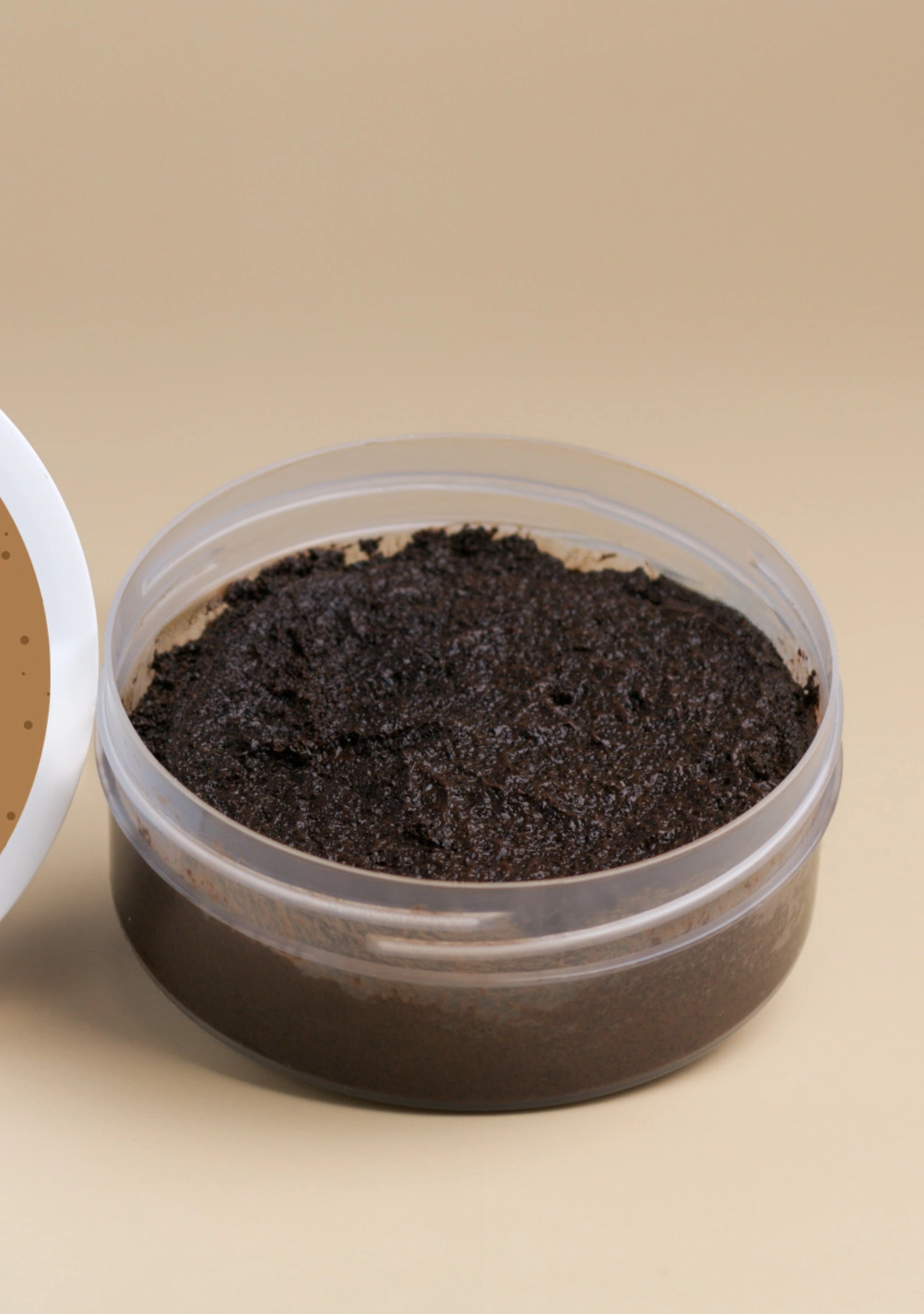 Body scrub with coffee grains and nourishing coconut oil will soften your skin and awaken your senses.